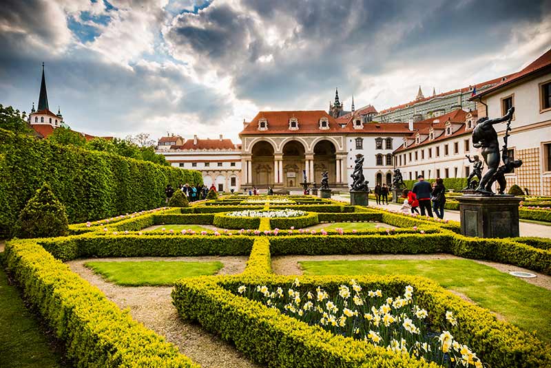 باغ والنشتاین در خارج از کاخ والنشتاین و خانه مجلس سنای چک، در مالا استرانای پراگ قرار دارد. هم باغ با طراحی هندسی و هم کاخ مجاور آن بین سالهای ۱۶۲۳ و ۱۶۲۹ ساخته شدهاند. با توجه به دوران ساخت باغ، سبک باروک و سالای عظیم آن (نوعی غرفه) چشمگیرتر است. مسافرانی که در طول تابستان در باغ قدم می زنند ممکن است با یک کنسرت یا اجرای تئاتر پذیرایی کنند.