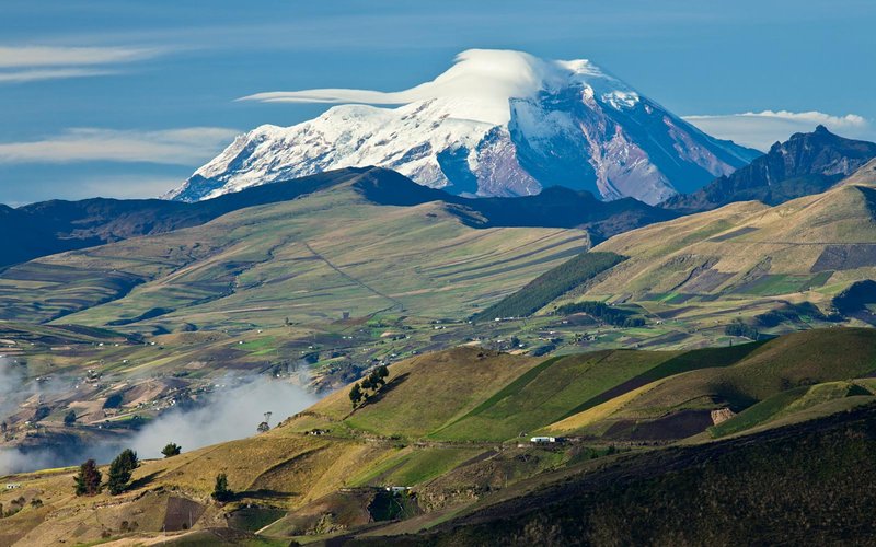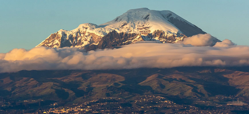 کوه چیمبورازو یک آتشفشان چینه ای آند در مرکز اکوادور است که به قدری چشمگیر بر فراز کشور خودنمایی می کند که در یک روز صاف می توانید آن را از شهر بندری بزرگ گوایاکیل در ۹۰ مایلی دورتر ببینید. چیمبورازو مرتفعترین نقطه اکوادور است، اما از نظر ارتفاع، از بلندترین قله آند فاصله زیادی دارد. در واقع، تقریباً ۴۰ کوه چشمگیر دیگر در آمریکای جنوبی وجود دارد که بسیاری از آنها (مانند آکونکاگوا، بلندترین قله قاره) در جنوب، نزدیک مرز شیلی و آرژانتین قرار دارند.